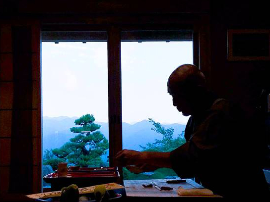 ミシュラン星レストラン”万惣”のシェフ長田耕爾がささゆり庵でお客様の目の前で調理、そして料理をご提供します。