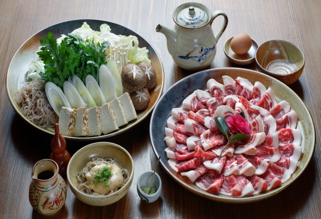 極上ボタンすき焼き鍋と手打蕎麦